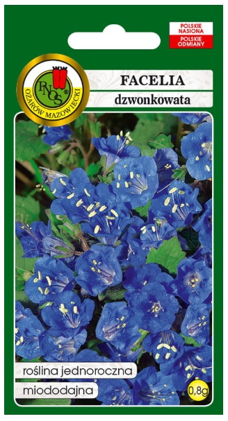 Facelia dzwonkowata jest rośliną jednoroczną. Tworzy rozetę szarozielonych, szorstkich liści, nad którymi górują sztywne, mocno rozgałęzione pędy kwiatowe, osiągające 20-30 cm wysokości. Kwitnie od czerwca do września, a jej niewielkie, ale bardzo liczne, dzwonkowate, intensywnie niebieskie kwiaty, zebrane są w baldachogrona. Jest rośliną miododajną warto ją sadzić, bo nęci do ogrodu liczne owady zapylające.