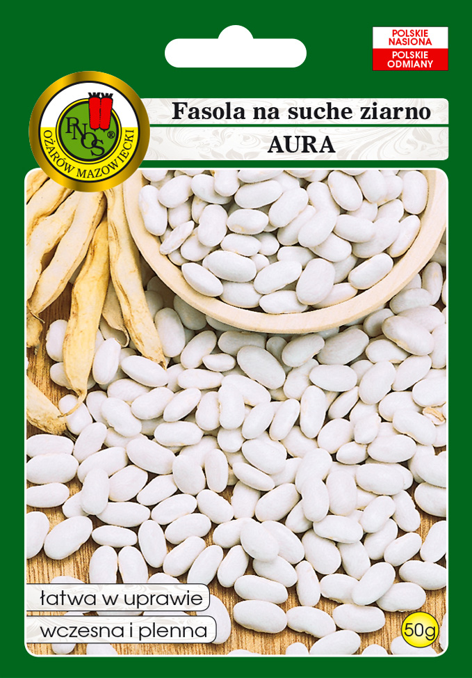 Fasola na suche nas Aura to karłowa, bardzo plenna, równomiernie dojrzewająca, z przeznaczeniem na suche ziarno. Rośliny o pokroju wzniesionym. Nasiona białe, owalnie wydłużone, średniej wielkości. Lubi glebę żyzna, próchniczą. Łatwa w uprawie. zalecane podlewanie.