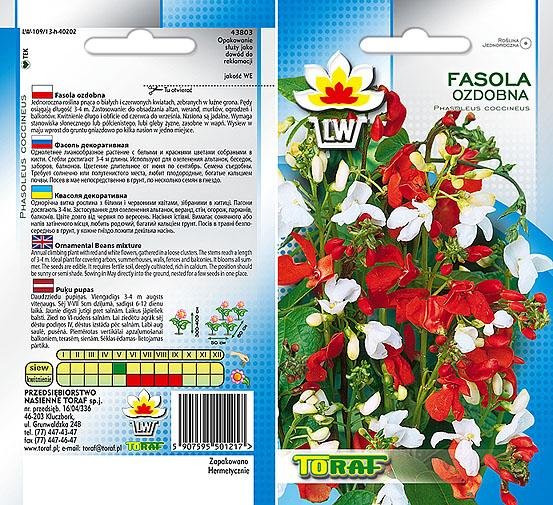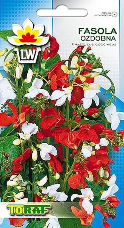 Jednoroczna roślina pnąca o białych i czerwonych kwiatach, zebranych w luźne grona. Pędy osiągają długość 3-4m. Zastosowanie: do obsadzania altan, werand, murków, ogrodzeń i balkonów.