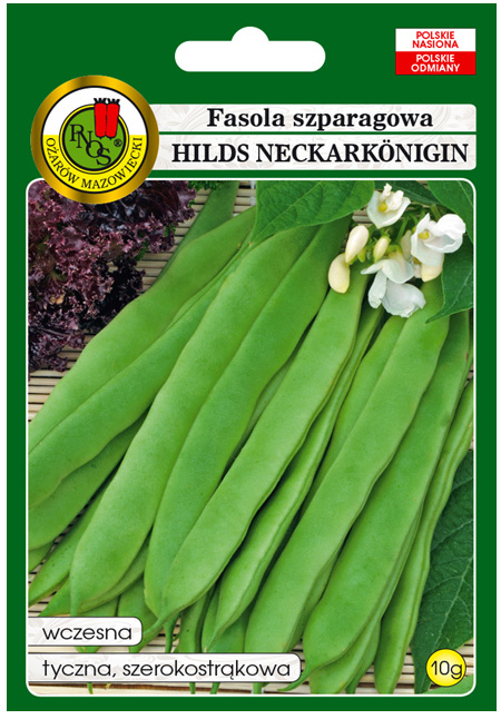 Fasola szparag Hilds Neckark to odmiana amatorska, wczesna, plenna. Strąki zielone, bardzo długie (do 25cm), średnio szerokie, na przekroju owalne, bezwłókniste. Rośliny silnie rosnące (do 2,5m) i krzewiące się, wymagają podpór. Idealna do bezpośredniego spożycia oraz konserwowania i mrożenia.