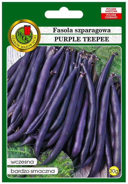 Nasiona Fasola szparagowa Teepee to amatorska, wczesna odmiana fasoli karłowej. Strąki barwy fioletowej, długie, lekko wygięte, bezwłókniste. Po ugotowaniu zmieniają barwę na zieloną. Bardzo smaczne i delikatne. Polecana do bezpośredniego spożycia, do konserwowania i mrożenia.