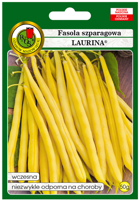 Fasola szparag żółta Laurina to odmiana średnio wczesna. Karłowa, bardzo plenna. Rośliny o pokroju skupionym. Strąki umieszczone wysoko na roślinie, długość 11-13 cm, jasnożółte, proste, gładkie, bezwłókniste. Odmiana polecana do przetwórstwa i do bezpośredniego spożycia.