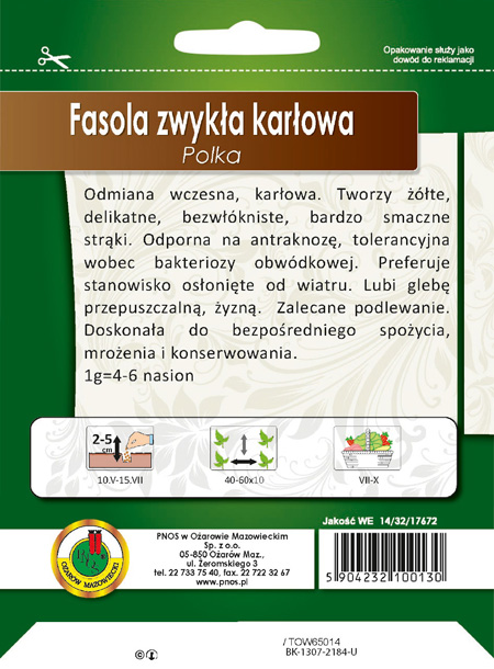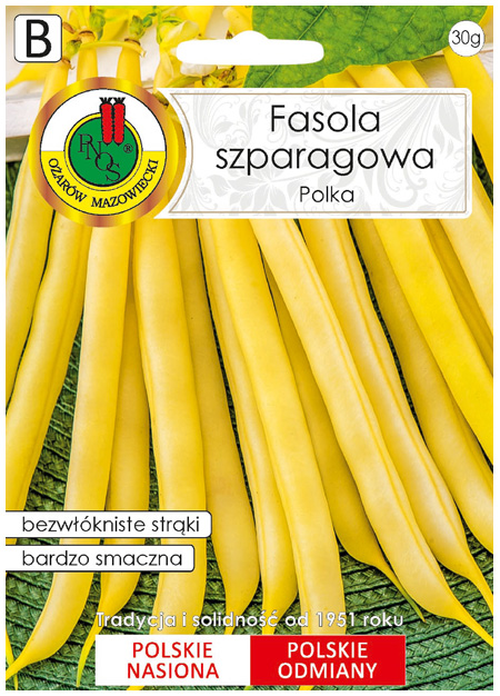 Fasola szparag żółta Polka to odmiana średnio wczesna o wysokim udziale (ponad 90%) plonu handlowego w plonie ogólnym. Rośliny średnio wysokie (45-50 cm), krzaczaste ze strąkami osadzonymi w środkowej części. Strąki jasnożółte, proste, bez przewężeń, długości 12-14 cm, okrągłe na przekroju, mięsiste, bezwłókniste i bardzo smaczne. Plonuje na poziomie 22-24 t/ha. Przeznaczona na bezpośrednie zaopatrzenie rynku oraz do zamrażania. Odporna na antraknozę i wysoko tolerancyjna na bakteriozę obwódkową.