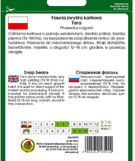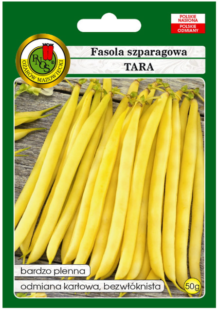 Fasola szparag żółta Tara to odmiana karłowa, średnio późna, bardzo plenna. Rośliny o pokroju wzniesionym. Strąki złoto-żółte, bezwłókniste, długości 12-14 cm, gładkie, na przekroju okrągłe. Osadzone w górnej części rośliny. Strąki można zbierać mechanicznie. Przydatna na bezpośrednie zaopatrzenie rynku i dla przetwórstwa. Plon 13-18t/ha.