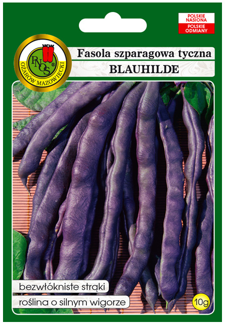 Fasola szparag Blauhilde to odmiana wczesna. Amatorska odmiana, o strąkach koloru fioletowo-niebieskiego. Strąki po ugotowaniu stają się zielone. Rośliny osiągają wysokość 3-4m tworząc bardzo długie (do 25cm), bezwłókniste, na przekroju owalne strąki, bardzo smaczna. Należy stosować podpory lub siać przy wysokich płotach.