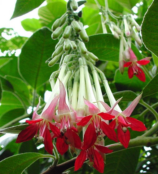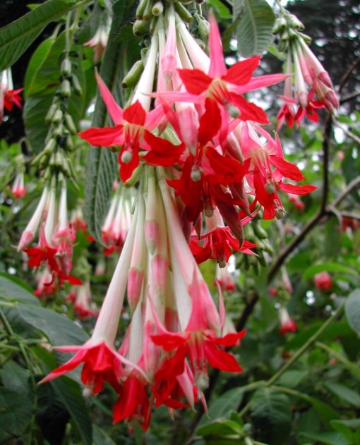 Fuksja boliwijska biała to wyjątkowo rzadki i ozdobny krzew liściasty, pochodzący z Ameryki Środkowej i Południowej oraz Nowej Zelandii. Kwiaty są duże, zwisające na szypułkach i występują w różnych odcieniach czerwieni i fioletu ale także mogą być białe, pomarańczowe, rzadko żółte. Szczególnie atrakcyjne są pełne odmiany o kwiatach dwukolorowych.