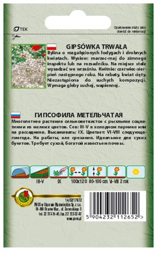 Gipsówka trwała biała to bylina o rozgałęzionych łodygach ai rozpierzchłych kwiatostanach, z drobnymi, białymi kwiatami. Roślina miododajna. Preferuje glebę suchą, wapienną. Kwiaty białe, drobne, zebrane w rozpierzchłe kwiatostany. Łodygi mocno rozgałęzione, liście wąskie pokryte woskowym nalotem.