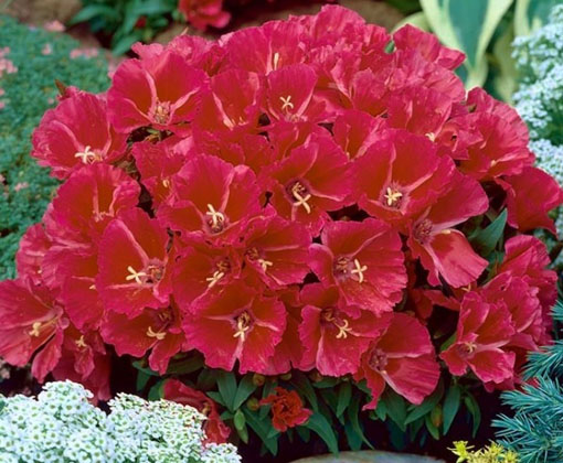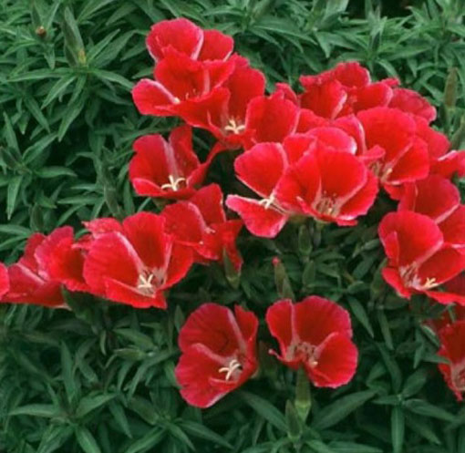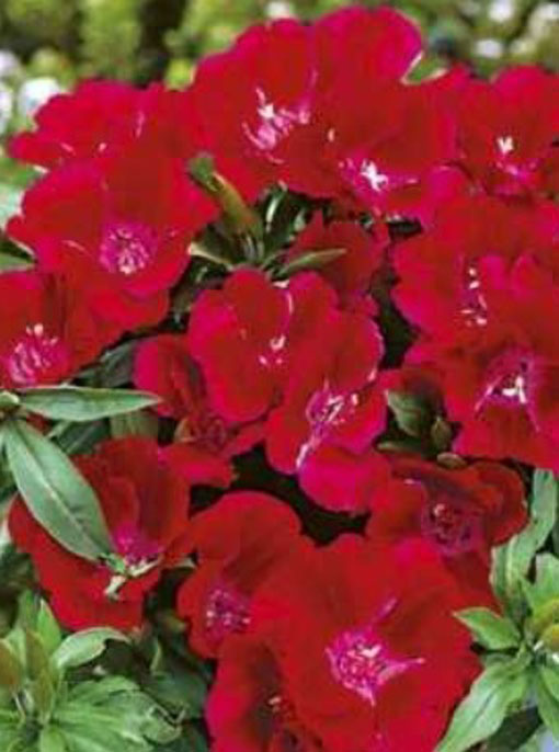 Godecja Meteor karminowo-szkarłatna Godetia grandiflora to jednoroczna roślina o rozgałęzionych i obficie ulistnionych prostych łodygach. Liście o kształcie lancetowatym lub eliptycznym. Kwiaty o średnicy ok. 8cm, wyrastają z kątów liści, pojedyncze lub pełne, błyszczące, zebrane po kilka w gronach. Barwy białej, kremowej, różowej, czerwonej i lila, występują także odmiany dwubarwne z charakterystycznymi, ciemnymi plamkami u nasady płatków. Kwitnie od czerwca do września, jednakże deszczowe lato skraca czas kwitnienie – krople deszczu niszczą delikatne płatki rośliny.