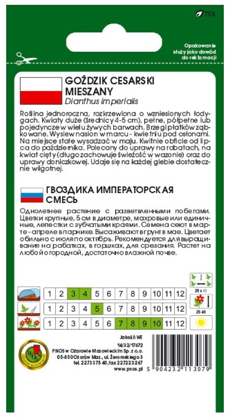 Goździk cesarski to roślina jednoroczna, silnie rozkrzewiona, o dużych pełnych, półpełnych i pojedynczych różnobarwnych kwiatach. Nadaje się na rabaty, do uprawy doniczkowej oraz na kwiat cięty. Kwiaty długo zachowują świeżość w wodzie.