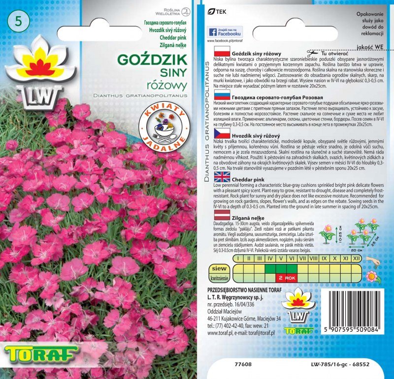 Niska bylina tworząca charakterystyczne szaroniebieskie poduszki obsypane jasnoróżowymi delikatnymi kwiatami o przyjemnym korzennym zapachu.