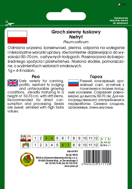 Groch łuskowy Nefryt to odmiana wczesna. Odmiana konserwowa, równomiernie dojrzewająca, plenna. Rośliny wysokości 50–70cm, o sztywnej łodydze, odporne na wyleganie i niekorzystne warunki uprawy. Nasiona pomarszczone o wyśmienitych walorach smakowych. Przeznaczona do przetwórstwa i mrożenia oraz do bezpośredniego spożycia.