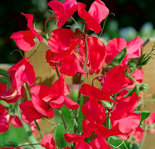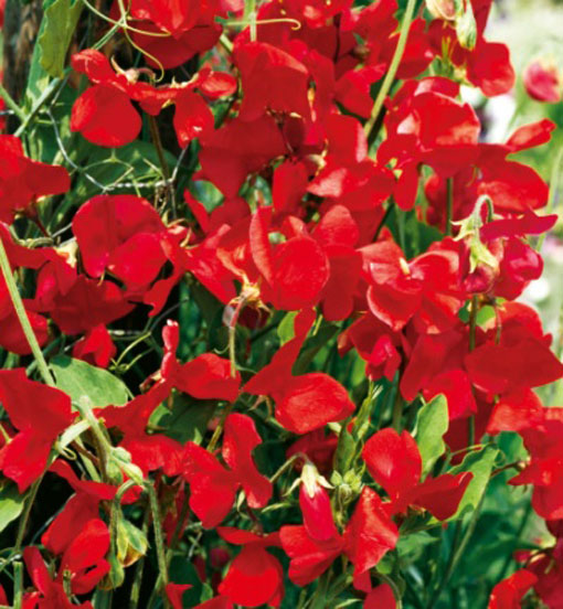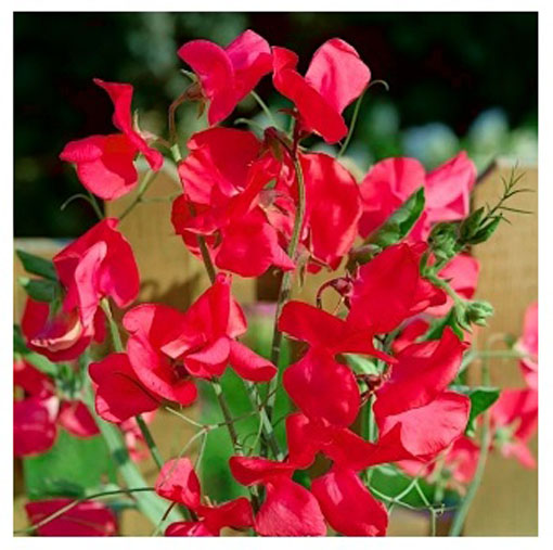 Groszek pachnący czerwony Lathyrus odoratus to absolutnie spektakularna, pięknie wybarwiona odmiana tego popularnego ozdobnego pnącza. Urocze, duże, przyjemnie pachnące kwiaty, pojawiają się na roślinie bardzo licznie od czerwca do sierpnia. Jego pędy osiągają do 150cm. Groszek ma cienką, kanciastą, nieznacznie oskrzydloną łodygę z wąsami służącymi do czepiania się podpór. Groszek pachnący wymaga gleby żyznej, próchniczej, wapiennej i lekko wilgotnej. Pachnący groszek znakomicie nadaje się na kwiat cięty. W ogrodzie sadzi się go przy ogrodzeniach, kratkach, pergolach, można także w skrzynkach balkonowych.