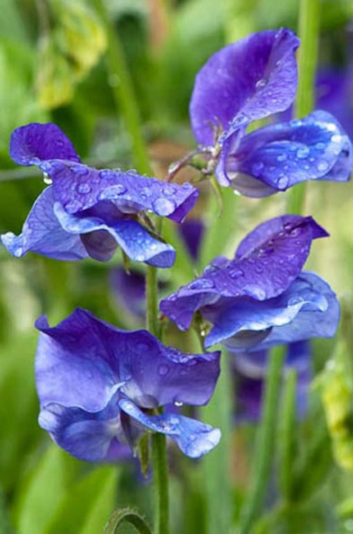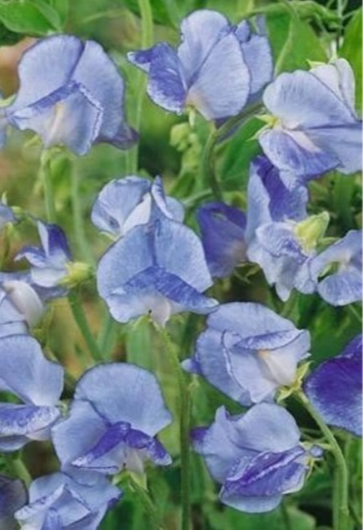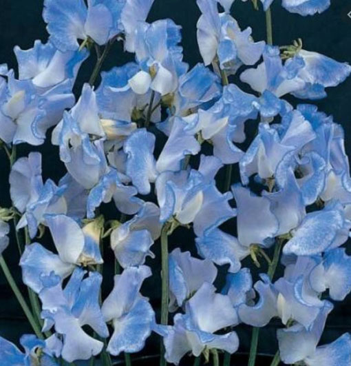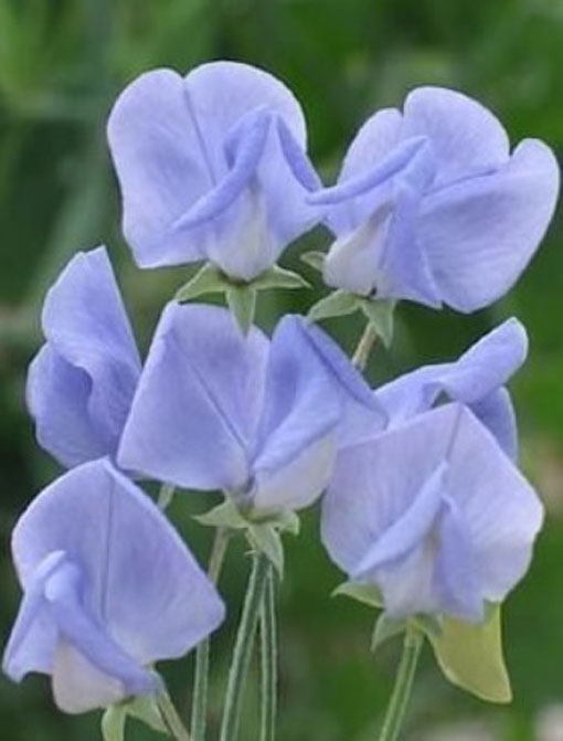 Groszek pachnący niebieski Lathyrus odoratus jest powszechnie znaną i lubiana rośliną jednoroczną z rodziny bobowatych. Naturalnym obszarem jego występowania są tereny basenu Morza Śródziemnomorskiego. Pędy groszku mają od 50 do 150 cm długości. Na cienkiej łodyce umieszczone sa wąsy czepne. Liście są pierzaste. kwiaty utrzymują się na groszku od lipca do późnej jesieni. Są silnie pachnące i mają typowo motylkowatą budowę (górny płatek zwany żagielkiem, 2 boczne – skrzydełka, płatek dolny – tzw. łódeczka). Występują w barwach od białej, żółtej, różowej, pomarańczowej do niebieskiej. Liście są niepozorne, eliptyczne i nie mają walorow dekoracyjnych.