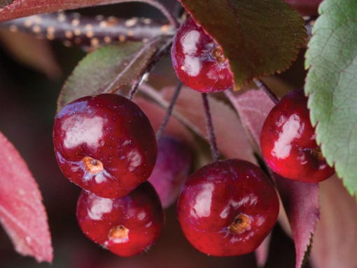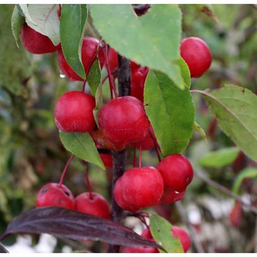 Jednak największy urok rajskiej jabłoni to niewielkie, kuliste, bardzo dekoracyjne jabłuszka, które we wrześniu w ogromnej ilości pojawiają się na gałązkach rośliny. To one stają się jesienną ozdobą krzewu, kiedy opadną liście. Owoce, w zależności od gatunku, utrzymują się na drzewku przez wiele tygodni, a nawet całą zimę. Stanowią wówczas niezwykłą dekorację zimowego ogrodu, a jednocześnie są doskonałym pożywieniem dla ptaków.