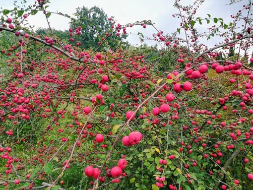 Rajska jabłoń lubi również stanowisko zaciszne, osłonięte od wiatru. Dlatego warto sadzić ją przy ścianach budynków, gdzie jej dekoracyjne kwiaty i owoce będą stanowiły nietuzinkową ozdobę najbliższego obejścia.