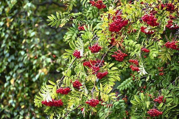 Jarząb pospolity to niewysokie drzewko. Osiąga około 15 metrów wysokości, najczęściej jednak znacznie mniej. Drugi człon jego biologicznej nazwy jest nadany nie bez powodu – Sorbus acucuparia to naprawdę bardzo pospolite drzewo. Można oglądać je w ogródkach i w parkach, lecz także w formie dzikiej. W lasach rośnie na terenie całego kraju, nawet na znacznych wysokościach. Roślina uprawiana jest w Polsce dla wysokich walorów estetycznych. Jarząb zwyczajny wytwarza nieparzysto-pierzastosieczne liście, które jesienią przebarwiają się na najpiękniejsze kolory. Złote, czerwone, intensywnie pomarańczowe… w tym okresie pospolity jarząb staje się bardzo oryginalną ozdobą ogrodu. Liście jarzębiny początkowo są ciemnozielone i ozdobnie piłkowane, poznaczone siecią nerwów. Kwiaty są małe i niepozorne. Drobniutkie i białe, układają się w gęste podbaldachy. Najbardziej charakterystyczne są jednak owoce jarzębiny. To niewielkie koraliki, o prawie idealnie kulistym kształcie. Są groniaste, bardzo drobne – mają około 5 mm średnicy. Ich kolor jest zależny od odmiany, jednak najczęściej są karminowo-czerwone, bardzo intensywne. Owoce jarzębiny są jadalne, chociaż mają wyrazisty, cierpki smak.