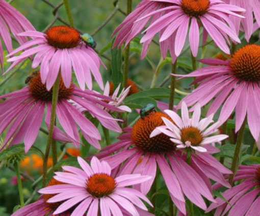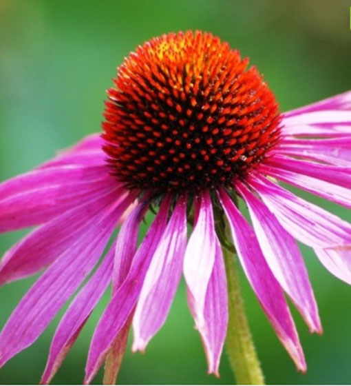 Jeżówka purpurowa rudbekia Echinacea purpurea to wysoka bylina ozdobna. Ojczyzna jeżówki jest wschodnie tereny Ameryki Północnej. Uprawiana jest od 1692 roku. Jeżówka purpurowa dorasta do 90-100 cm wysokości. Łodygi są proste, chropowate. Posiada liście owalne lub lancetowate, koloru ciemnozielonego. Koszyczki kwiatowe są duże, składają sie od 12 do 20 dużych, promienistych płatków. Języczkowate kwiatki są purpurowe lub purpurowo-różowe, zaostrzone na końcach, a środek tworzą kwiatki purpurowo-brązowawe, rurkowate. Kwitnie od czerwca do października przez około 60 dni. Jeżówka purpurowa doskonale nadaje się do upiększania rabat i klombów. Można ją posadzić z innymi niskimi bylinami lub wokół drzew. Często sadzi się ją też w pojemnikach. Bardzo ładnie komponuje się z astrami i floksami. Ze względu na dużą trwałość wykorzystuje się ją jako kwiat cięty - pięknie prezentuje się w wazonach. Jeżówka purpurowa jest bardzo łatwa w uprawie. Potrzebuje gleby dość żyznej, piaszczystej. Najlepiej rośnie na stanowiskach słonecznych. Jest także prosta do rozmnożenia.