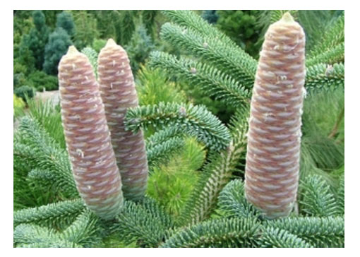 Jodła numidyjska Abies numidica to gatunekJodła numidyjska (Abies numidica) – gatunek drzewa z rodziny sosnowatych. Drzewo wiecznie zielone, dorastające do wysokości 20-35 m i średnicy pnia 1 m. drzewa z rodziny sosnowatych. Drzewo wiecznie zielone, dorastające do wysokości 20-35 m i średnicy pnia 1 m. Igły bardzo ładne, srebrzystoniebieskie z wierzchu, z białym paskiem pod spodem, jakby nastroszone, sztywne, ułożone grzebieniasto, lekko podgięte do góry. Szyszki barwy niebieskozielonej, z fioletowym lub różowym odcieniem, dojrzałe są brązowe. Ich długość wynosi 10-20 cm, szerokość ok. 4 cm