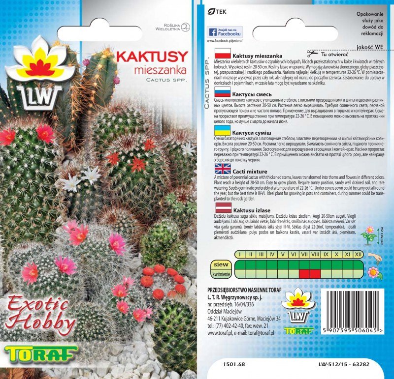 Mieszanka wieloletnich kaktusów o zgrubiałych łodygach, liściach przekształconych w kolce i kwiatach w różnych kolorach. Wysokość roślin 20-50 cm. Rośliny łatwe w uprawie. Wymagają stanowiska słonecznego, gleby piaszczystej, przepuszczalnej, i rzadkiego podlewania.