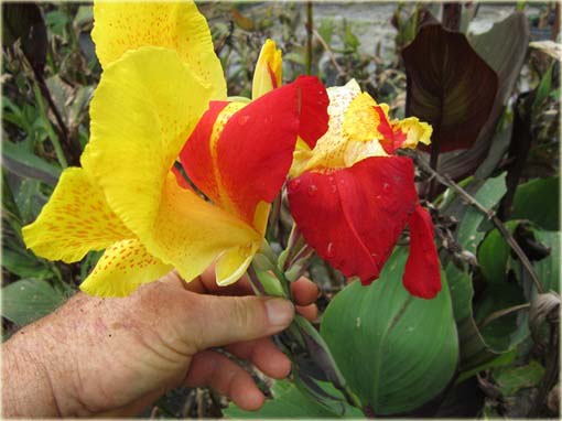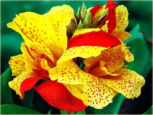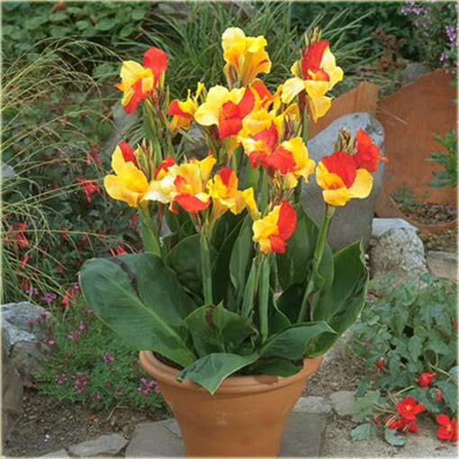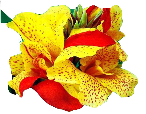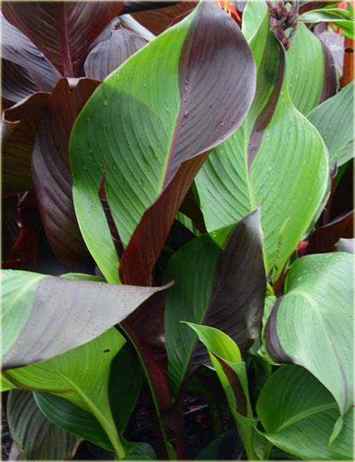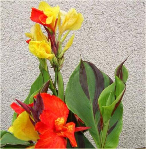 Kanna czerwono-żółta dwukolorowe liście, paciorecznik, Canna