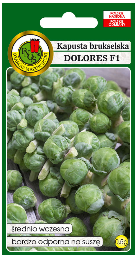 Kapusta brukselska Dolores to odmiana średnio wczesna. Roślina silnie rosnąca, wyrównane we wzroście, szybko wytwarzające liście, dobrze kryjące ziemię. Główki zielone, ścisłe, wyrównane w wielkości. Odmiana nadaje się do zbioru mechanicznego. Lepiej znosi suszę od innych odmian kapusty brukselskiej. Nadaje się do długotrwałego przechowywania.