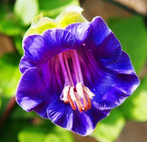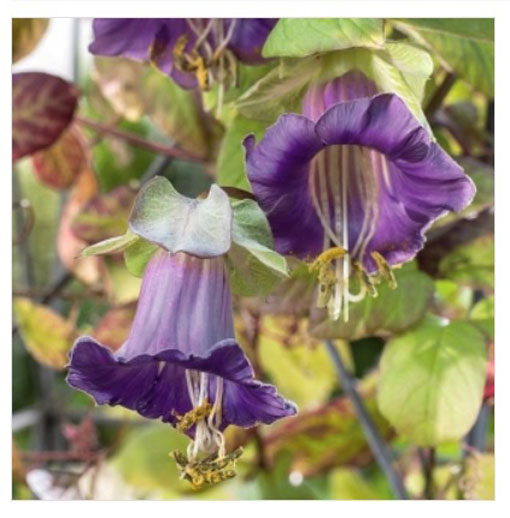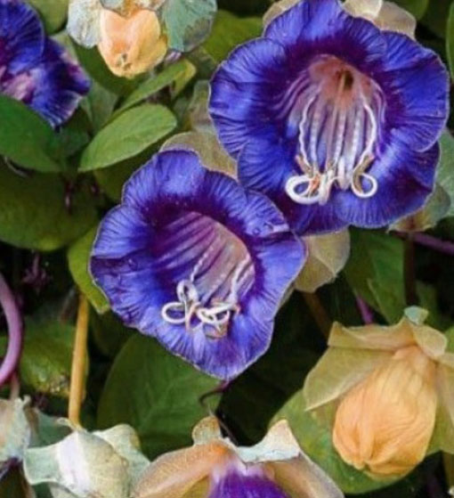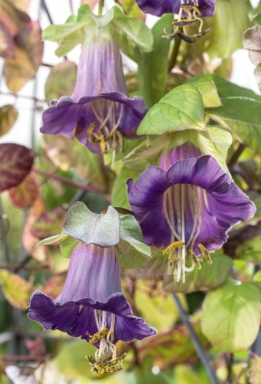 Kobea pnąca niebieska Cobaea scandens zaczyna kwitnąć zazwyczaj w połowie lipca. Ma duże dzwonkowate kwiaty, na początku zielonkawe, później fioletowopurpurowe, o charakterystycznej budowie kielicha. Kwiaty osadzone są na długich, odpornych na zerwanie szypułkach, wyrastają pojedynczo z kątów liści. Przekwitłe kwiaty należy usuwać, aby pobudzić roślinę do tworzenia nowych. Jeśli chcemy uzyskać nasiona, należy wybrać kilka kwiatów i pozwolić zawiązać nasiona (inne przekwitłe kwiaty usuwamy).