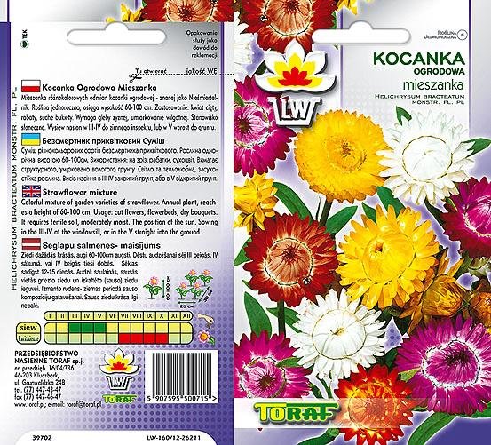Mieszanka różnokolorowych odmian kocanki ogrodowej - znanej jako Nieśmiertelnik. Roślina jednoroczna, osiąga wysokość 60-100 cm.