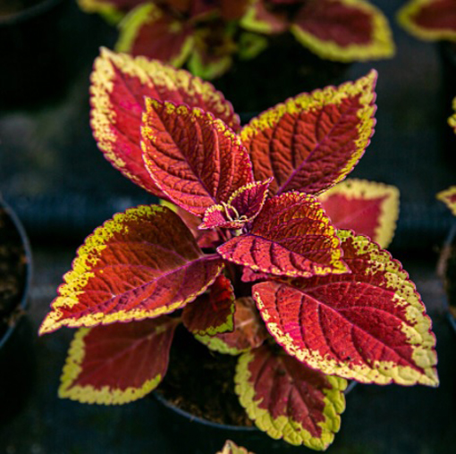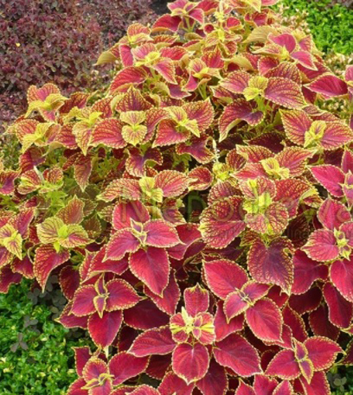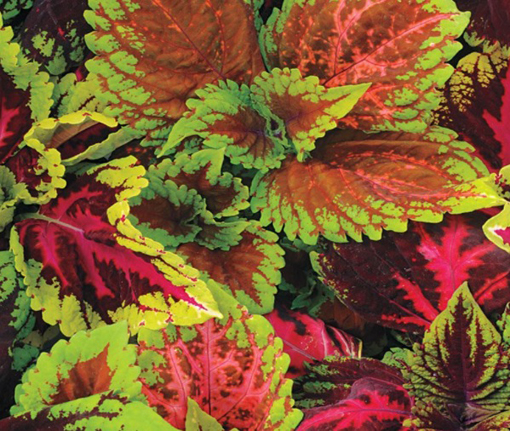 Koleus Blumego Coleus scutellarioides to odmiany ozdobne o wyjątkowo dekoracyjnych liściach. Znakomicie nadają się do uprawy w pojemnikach na balkonach i tarasach. Liście są wielobarwne od koloru białego, kremowego, poprzez wszystkie odcienie zieleni i różu a nawet koloru niebieskiego. Koleusy znakomicie nadają się również do uprawy na rabatach w ogrodzie. Atrakcyjnie prezentują się w kompozycjach z innymi roślinami. Drobne nasiona koleusa wysiewamy w rządkach co 10-15 cm i przesypujemy ziemią. Można też wymieszać je z piaskiem przed siewem i dopiero taką mieszankę rozsiać w pojemniku. Kiełkowanie odbywa się najszybciej w temperaturze 20-27°C. Rozwijające się siewki gdy wykształcą pierwszą parę liścieni – pikujemy, a po wytworzeniu liści właściwych przenosimy do osobnych doniczek z ziemią ogrodową albo na słoneczną rabatę.