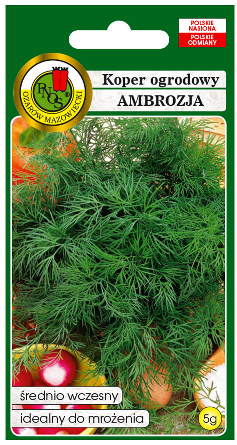 Koper Ambrozja to odmiana średnio wczesna. Odmiana o dużym plonie zielonej masy, intensywnie zielonym liściu, bardzo aromatyczna. Polecana do spożycia na świeżo i do mrożenia. Charakteryzuje się przedłużonym okresem zbioru, późno wybija w pędy kwiatostanowe. Może być wysiewana w tunelach foliowych wczesną wiosną do pędzenia, a także nadaje się do siewu na zbiór jesienny. Rozsadę posadź na głębokość 5 cm, w rozstawie 1×1 metr. Obfite nawadnianie jest konieczne szczególnie latem, gdy jest gorąco i sucho. Konieczne jest także odchwaszczanie gleby pomiędzy roślinami. Gdy rozsada się przyjmie, warto zastosować dodatkowe nawożenie kompostem lub dobrze przekompostowanym obornikiem.