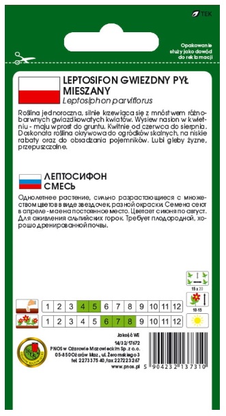 Leptosifon Gwiezdny to silnie rozkrzewiona, delikatna roślina jednoroczna. Kwiaty drobne, różnobarwne, gwiazdkowate. Lubi gleby żyzne, przepuszczalne. Świetnie nadaje się do wypełniania pustych miejsc na rabatach, przy ścieżkach i na skalniakach.