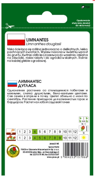 Limnanthes to delikatna roślina nisko ścieląca się, o pierzastych, błyszczących, jasnozielonych liściach i białożółtych, kubkowatych kwiatach. Kwitnie długo i obficie tworząc kobierce kwiatów o intensywnym cytrynowym zapachu. Lubi gleby żyzne, przepuszczalne.