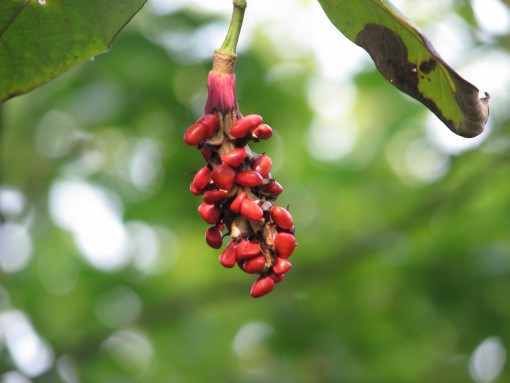 To zrzucające liście małe drzewo lub krzew dorasta do 8 m wysokości. Jego kora jest brązowoszarawa. Blaszka liściowa jest owłosiona od spodu i ma kształt od eliptycznie owalnego do podługowato owalnego. Mierzy 6,5–12 cm długości oraz 5–13 cm szerokości, ma nasadę od sercowatej do zaokrąglonej i wierzchołek od ostrego do spiczastego. Ogonek liściowy jest owłosiony i ma 1–3 cm długości. Kwiaty są pojedyncze, pachnące, mierzą 10–12 cm średnicy, rozwijają się na kątach pędów. Listków okwiatu jest 9, mają białą barwę. Zewnętrzne mają eliptyczny kształt i mierzą 4,5–6 cm długości, natomiast wewnętrzne są odwrotnie jajowate i mają 3–4,5 cm długości. Pręciki mają czerwone nitki. Owocolistki są owłosione i dorastają do 10 mm długości. Owoce to zwisające mieszki o czerwonej, później purpurowej barwie, osiągają 6–10 cm długości oraz 2–3 cm szerokości.