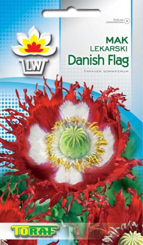 Roślina jednoroczna wys. 80cm, wyjątkowo obficie kwitnąca, tworzy wielkie (10 cm śr.) kwiaty o strzępiastych płatkach , w kolorze duńskiej flagi, biały krzyż na czerwonym tle. Bardzo dekoracyjna odmiana na wysokie rabaty, do ogrodów naturalistycznych, kwiat cięty i do pojemników.