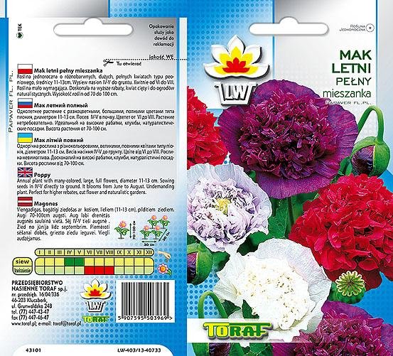 Roślina jednoroczna o różnobarwnych, dużych, pełnych kwiatach typu peoniowego, średnicy 11-13cm.