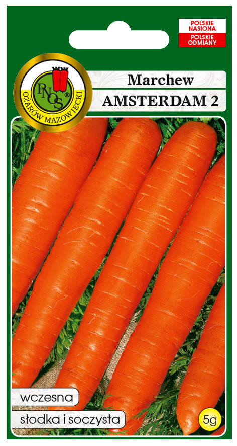 Marchew jadalna Amsterdam to odmiana wczesna (okres wegetacji 90-110 dni). Korzenie długości 12-15 cm, walcowate, intensywnie pomarańczowe. Miąższ soczysty, słodki, bardzo smaczny. Przeznaczona na wczesny zbiór pęczkowy i do spożywania w okresie letnio-jesiennym. Wymaga gleb lekkich, żyznych Siew w drugim roku po oborniku.