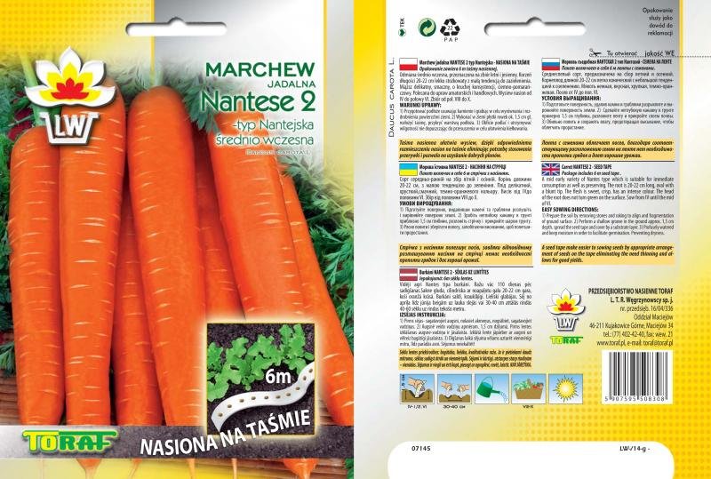 Taśma nasienna ułatwia wysiew, dzięki odpowiedniemu rozmieszczeniu nasion na taśmie eliminując potrzebę stosowania przerywki i pozwala na uzyskanie dobrych plonów. Opakowanie zawiera 6 m taśmy nasiennej