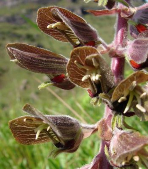 Melianthus villosus jest krzewem o wielu łodygach, dorastającym do 2 m wysokości i 3 m szerokości. Liście są duże, gęsto owłosione, z ząbkowanymi brzegami i mają nieprzyjemny zapach po zmiażdżeniu. Kwiaty bordowo-brązowe z czekoladowo-brązowymi przyłbicami i zielonymi pręcikami w wyprostowanych kwiatostanach kwitną nad liśćmi, w lecie (listopad). - Luty). Bliższe spojrzenie na kwiaty pokazuje, że są to płatki kasztanowo-brązowe z zielonymi żyłkami, a wewnątrz nich są małe, różowe lub fioletowe płatki. Owoce tej rośliny są 4-kątne, napompowane, zielono-brązowe, zawierające błyszczące czarne nasiona. Kwiaty tej rośliny wytwarzają obfity nektar i są odwiedzane przez wiele gatunków ptaków. Melianthus villosus ma trwałe korzenie, które pozwalają roślinie przetrwać okresy suszy i zimna oraz pożary, kiedy łodygi obumierają, korzenie przeżywają i roślina odrasta, gdy warunki są dla niej korzystne.