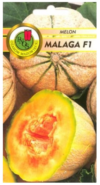 Melon malaga to odmiana wczesna roślina polowa w typie cantaloup, silnie rosnąca o wysokiej tolerancji wobec mączniaka rzekomego. Odmiana przeznaczona do uprawy pod osłonami lub w polu ściółkowanym folią. Doskonała do bezpośredniego spożycia. Owoce prawie kuliste, żebrowane (1-1,5 kg), żółtopomarańczowe, pokryte delikatną siatką. Miąższ intensywnie pomarańczowy, słodki, aromatyczny, gruby.