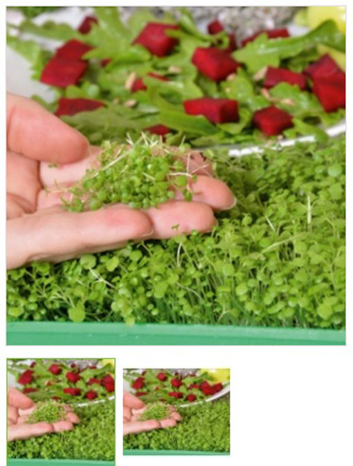 Microgreens Rukiew wodna młode młode listki Nasturtium officinale. Microgreens są to młode rośliny, które wykorzystuje się we wczesnej fazie rozwojowej. Podobne do kiełków jednak uprawia się je w ziemi i zbiera nieco później, bo dopiero gdy rozwiną liścienie i pierwszą parę liści właściwych. Ich ogromną zaletą jest to, że zawierają nawet kilka razy więcej wartościowych składników, niż ich kiełki czy dorosłe formy. Rukiew wodna zawiera glikozydy, duże ilości witaminy C, A i E oraz sole mineralne. Ma korzystny wpływ na pracę układu trawiennego i polecana jest przy schorzeniach tarczycy. Świeże młode listki i pędy mają korzenny zapach i ostry smak, świetnie sprawdzą się jako przyprawa do sałatek, kanapek, dań z jajek i twarogu.