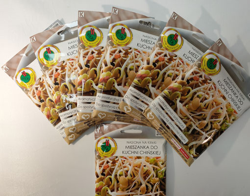 Dobrana przez nas w odpowiedniej proporcji mieszanka nasion fasoli Mung, soji i soczewicy, tak aby ostry smak kiełków fasoli Mung równoważony był łagodnym smakiem kiełków soczewicy. Kiełki te poza walorami smakowymi charakteryzują się wysoką zawartością witamin i soli mineralnych.