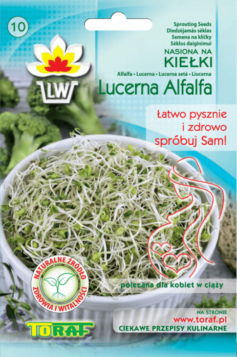 Ze względu na wysoką zawartość witamin A, E, B- complex oraz mikroelementów kiełki lucerny polecane są kobietom w okresie ciąży i karmienia a także osobom niejedzącym mięsa - witamina B12 zapobiega niedokrwistości, osteoporozie, nowotworom i chorobom serca.