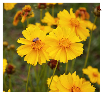 Nachyłek lancetowaty żółty Coreopsis lanceolata to jedna z najdłużej kwitnących odmian nachyłka o okazałych, żółtych kwiatach z brązowym akcentem w środku koszyczka oraz tępo powcinanych brzegach płatków. Dorasta do ok 40 cm wysokości tworząc luźne, lecz sztywne pędy z dużymi (4 cm) kwiatami ukazującymi się od maja aż do października. Kwiaty pojawiają się w dużych ilościach co sprawia, że jest to bardzo cenna bylina do nasadzeń na rabatach i w innych kompozycjach, gdzie złocista barwa kwiatów świetnie rozjaśni całe zestawienie.