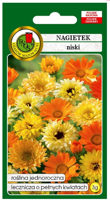 Nagietek niski to roślina lecznicza, jednoroczna o krzaczastym pokroju, ma grube silnie rozgałęzione pędy, z pachnącymi liśćmi. Koszyczki kwiatowe o różnej budowie, pomarańczowe lub żółte, osadzone pojedynczo na końcach szypułek. Dobrze rośnie na każdej, dostatecznie wilgotnej glebie ogrodowej.