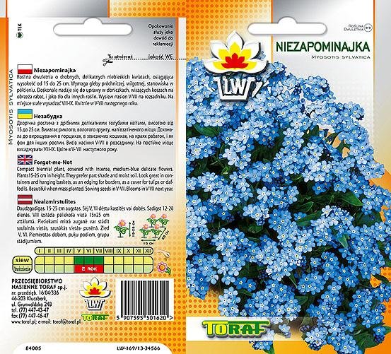 Roślina dwuletnia o drobnych, delikatnych niebieskich kwiatach, osiągająca wysokość od 15 do 25cm. Wymaga gleby próchniczej, wilgotnej, stanowiska w półcieniu.