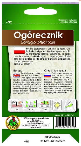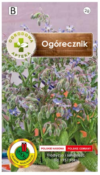 Ogórecznik lekarski to roślina jednoroczna. Pochodzi z rejonu śródziemnomorskiego i Azji. Częścią przyprawową są liście. Lubi glebę lekką i wilgotną. Wysiew wprost w pole. Ziele ogórecznika lekarskiego jest surowcem leczniczym, zawiera flawonoidy, śluzy, garbniki, żywice, kwasy organiczne i sole mineralne. Jednak najcenniejszą substancją tej rośliny jest boragoglandyna – olej o wysokiej zawartości niezbędnych nienasyconych kwasów tłuszczowych, który pozyskiwany jest z nasion rośliny. Dzięki nim ogórecznik lekarski ma pozytywny wpływ na układ krążenia (m.in. obniża poziom tzw. złego cholesterolu LDL, a tym samym zmniejsza ryzyko miażdżycy) i układ odpornościowy (wzmacnia organizm i chroni przed rozwojem chorób). Pomoże także w stanach zapalnych jamy ustnej, trudnościach w odkrztuszaniu, chrypce i suchym kaszlu. Współczesna fitoterapia poleca stosowanie ogórecznika w postaci olejku w przewlekłych chorobach skórnych. Pomoże także przy wypadaniu włosów i łamliwości paznokci. Posiekane liście dodaje się do sałatek, barszczu ukraińskiego, sosów i majonezów.