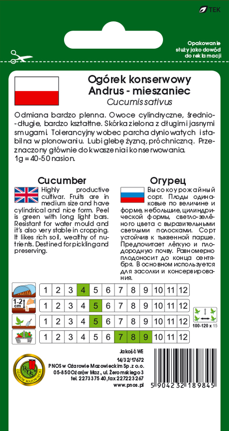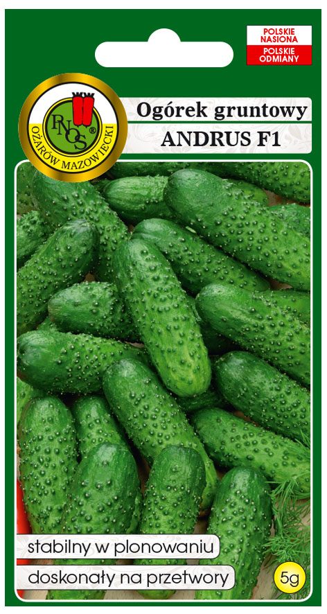 Ogórek Andrus to odmiana wczesna. Przeznaczony głównie do kwaszenia i konserwowania. Owoce cylindryczne, średnio długie, bardzo kształtne. Skórka zielona z lekkim połyskiem i długimi jasnymi smugami. Brodawki duże, rzadkie. Odmiana tolerancyjna wobec mączniaka rzekomego i parcha dyniowatych, bardzo plenna i stabilna w plonowaniu. Preferuje glebę żyzną, próchniczą.
