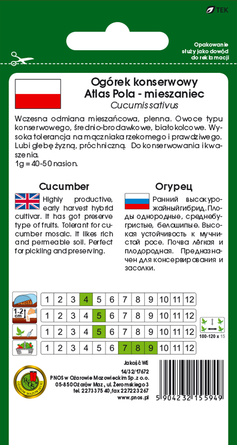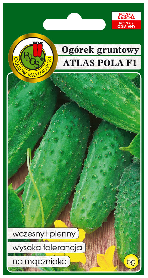 Ogórek gruntowy Atlas to odmiana wczesna, mieszańcowa, plenna. Owoce typu konserwowego, średniobrodawkowe, białokolcowe. Wysoka tolerancja na mączniaka rzekomego. Roślina o średnio silnym wzroście, z przewagą kwiatów żeńskich. Lubi glebę żyzną, próchniczą. Polecany do konserwowania i kwaszenia.