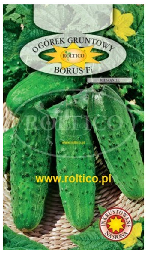Ogórek gruntowy Borus to odmiana średnio wczesna, bardzo plenna. Owoce ciemnozielone ze słabo widocznymi smugami oraz dużymi biało kolcowymi brodawkami. Przeznaczona do kwaszenia, na ogórki małosolne oraz długiego przetrzymywania. Odporna na parcha dyniowatych i tolerancyjna na mączniaka rzekomego. Wysiew nasion w drugiej połowie maja po przymrozkach w rozstawie 90-120×15 cm. Zbiór od połowy lipca do końca września.