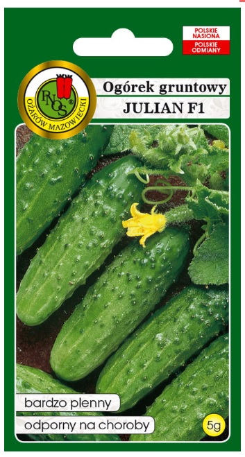 Ogórek Julian to średnio późna odmiana z wyraźnymi brodawkami, plenna, owoce dobrej jakości, polecane głównie do kwaszenia i konserwowania. Przeznaczona do uprawy w polu. Owoce kształtne, zielone, z wyraźnymi smugami. Intensywnie wybarwione, dobrze utrzymują barwę przez cały okres wegetacji. Owoce bardzo długo zachowują dobrą jakość.