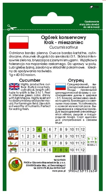 Ogórek Krak to odmiana średnio wczesna. Mieszaniec typowo konserwowy, wyróżniająca się wysoką zdrowotnością i plennością. Owoce bardzo kształtne, cylindryczne, stosunek długości do szerokości 3:1 Skórka intensywnie zielona, błyszcząca z jasnymi smugami. Owoce wyrośnięte bardzo dobre do konserwowania i do kwaszenia. Odmiana o wysokiej tolerancji wobec mączniaka rzekomego wirusa mozaiki ogórka, całkowicie odporna na parcha dyniowatych.